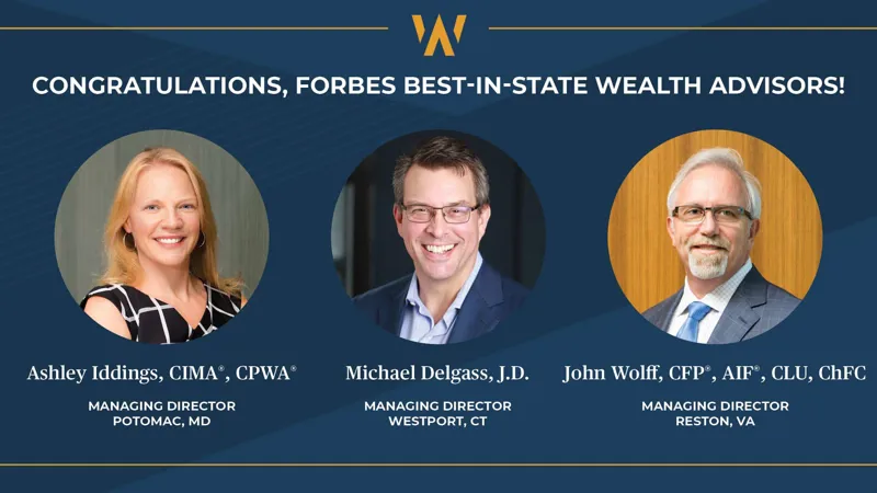 The list, which highlights top performing advisors across the nation, includes Michael Delgass, J.D., managing director in the Westport, Conn., office; John Wolff, CFP®, AIF®, CLU®, ChFC®, managing director in the Reston, Va., office; and Ashley Iddings CIMA®, CPWA®, ma